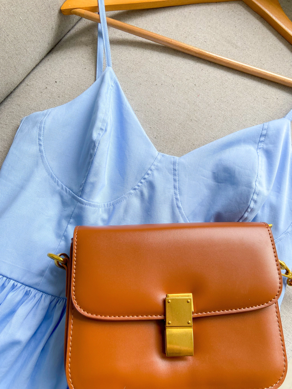Acessório indispensável para complementar os looks da nova coleção Aurora, a bolsa camel traz sofisticação e versatilidade em cada detalhe. Com um design moderno e funcional, ela combina perfeitamente com a paleta de cores da coleção, elevando qualquer produção